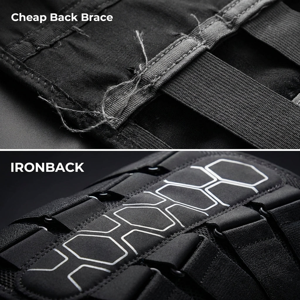 Your back pain isn't caused by weakness it's caused by micro instability under repeated load, which is why pills only mask symptoms, stretches don't work under pressure, and cheap braces ride up the moment you bend, but IRONBACK's hexagonal reinforcement technology mechanically stabilizes your spine with anti-slip grip that stays locked during real work